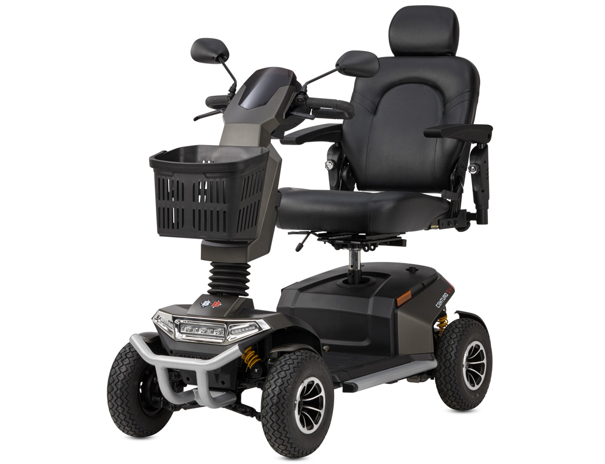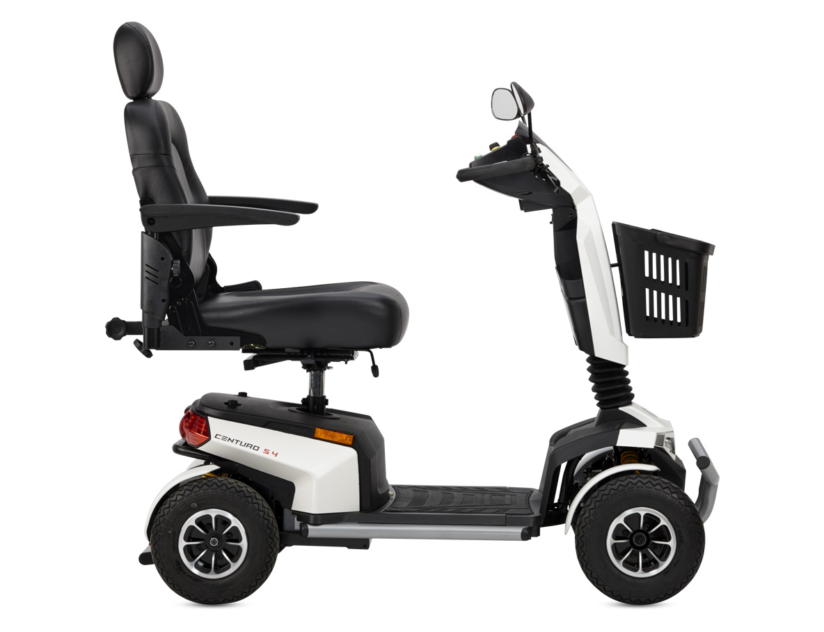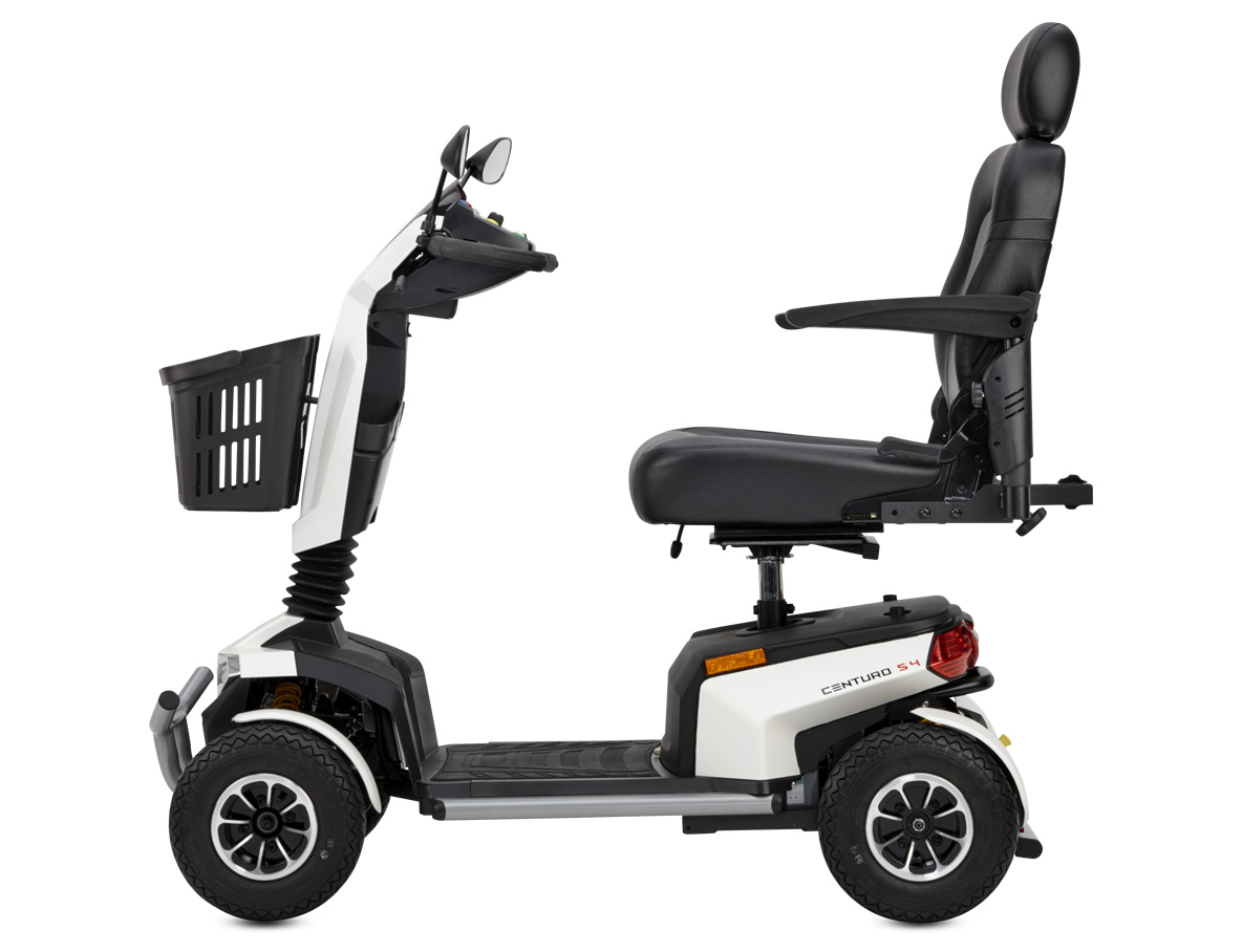 El potente scooter CENTURO S4 está diseñado para su uso en interiores y exteriores. Se trata de la versión ampliada del modelo estándar CENTURO S2. Con una velocidad de 10 km/h, con este scooter eléctrico podrá disfrutar al máximo de su movilidad en la ciudad y en la naturaleza. Dos baterías de 55 Ah y los neumáticos de 12 pulgadas permiten contar con un alcance de 30 km. Su variedad de funciones, la suspensión completa y un asiento cómodo garantizan un placer de conducción confortable. Este vehículo eléctrico alcanza la máxima seguridad gracias a los parachoques instalados alrededor del vehículo.