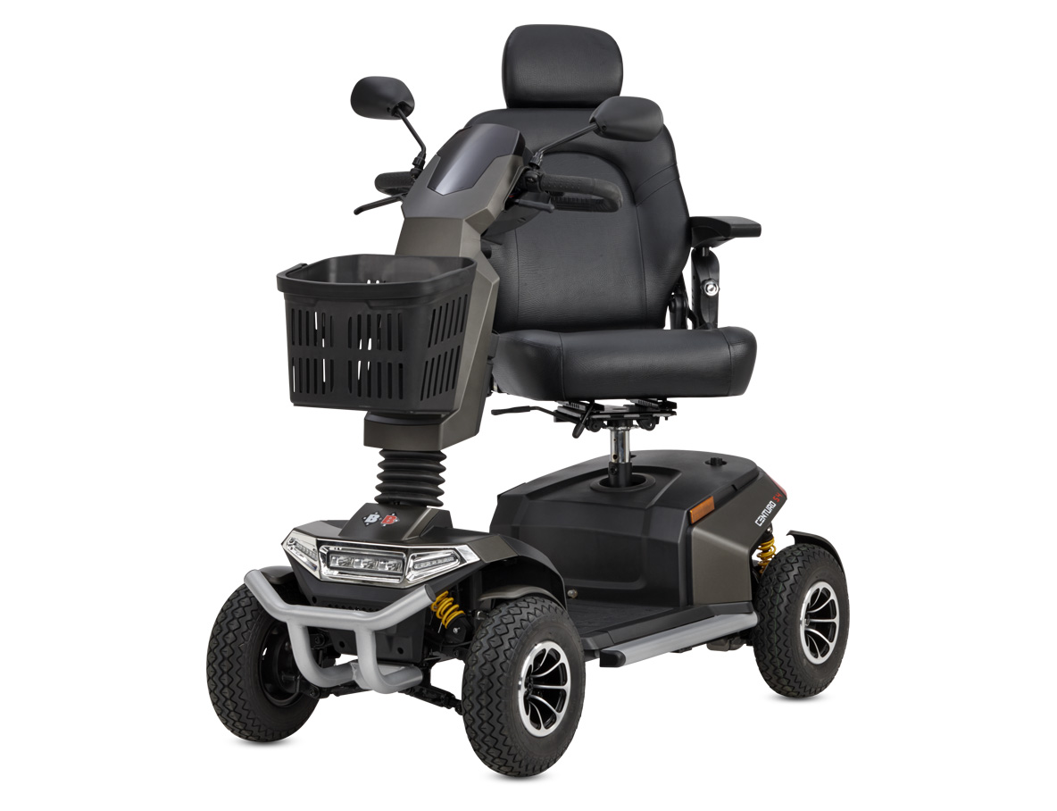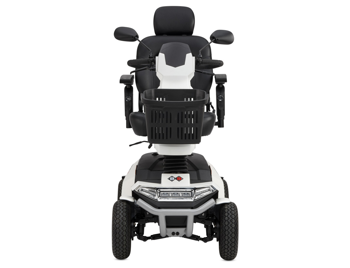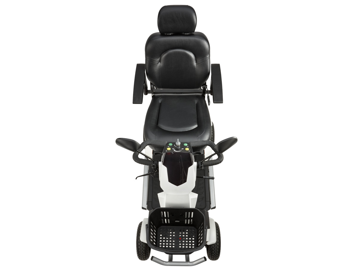 El potente scooter CENTURO S4 está diseñado para su uso en interiores y exteriores. Se trata de la versión ampliada del modelo estándar CENTURO S2. Con una velocidad de 10 km/h, con este scooter eléctrico podrá disfrutar al máximo de su movilidad en la ciudad y en la naturaleza. Dos baterías de 55 Ah y los neumáticos de 12 pulgadas permiten contar con un alcance de 30 km. Su variedad de funciones, la suspensión completa y un asiento cómodo garantizan un placer de conducción confortable. Este vehículo eléctrico alcanza la máxima seguridad gracias a los parachoques instalados alrededor del vehículo.