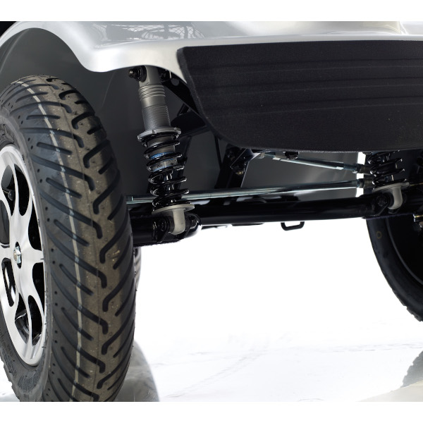 Scooter deportivo, robusto de 4 ruedas preparadas para el aire libre. Total de cuatro ruedas con suspensión independiente. Bandeja del suelo con alfombra removible fácil de limpiar. Sistema de luces integrado: faro, luces traseras, intermitentes y luces de emergencia. Cesta portaobjetos incluida. Asiento para dos personas. Retrovisores incluidos.