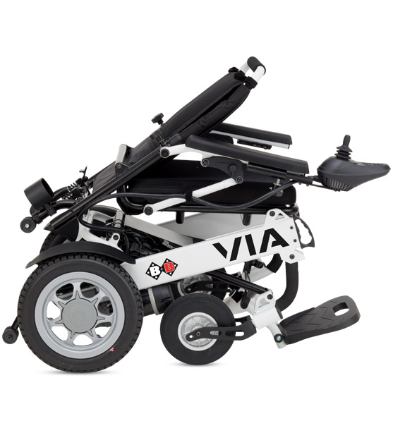 Debido a su mecanismo de plegado integrado, la Via es fácil de transportar, se pliega en pocos segundos y su reducido volumen permite que pueda introducirse fácilmente en el maletero de un automóvil. Puede acompañarte a cualquier lugar y ayudarte en tu movilidad: en centros comerciales, visitas al médico, en un viaje y por supuesto para visitar a tus seres queridos. Cuando no necesites la Via, simplemente puedes plegarla y dejarla en pie, su gran estabilidad impide que pueda volcar y elimina el riesgo de lesiones, además es fácil de empujar incluso cuando está plegada.