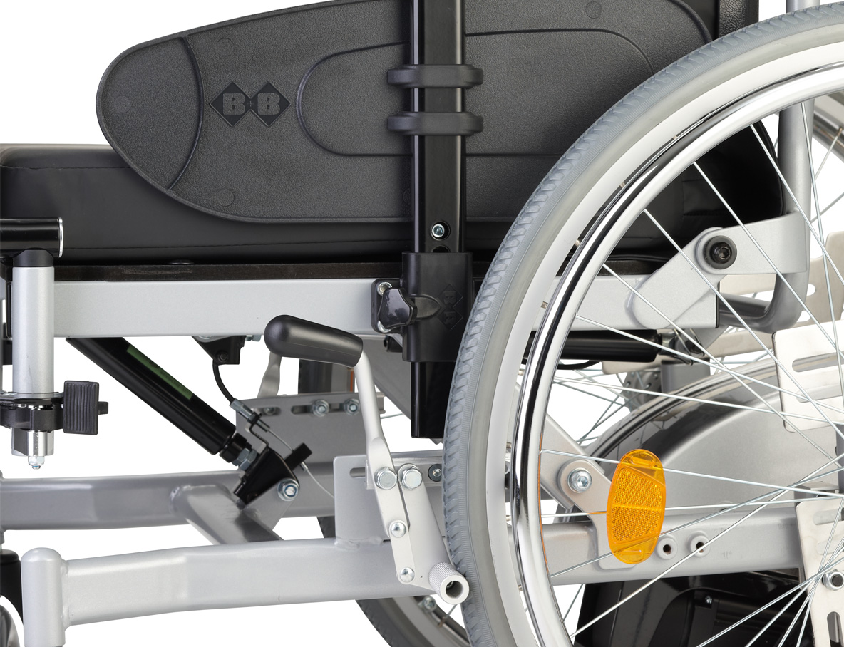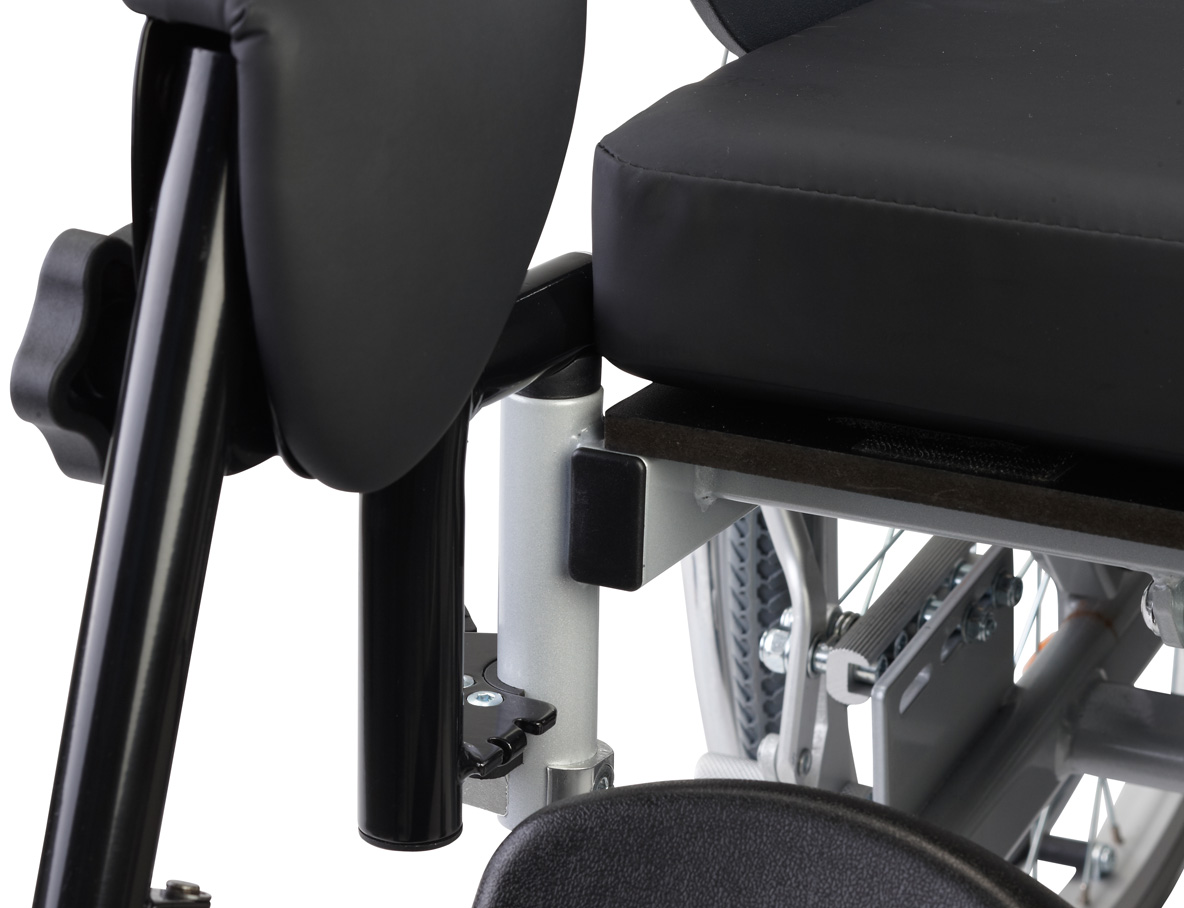 Los reposapiernas se anclan en el exterior del bastidor del asiento. Esto aumenta el espacio disponible para las piernas y por tanto, la movilidad del usuario. Los acolchados para las rodillas, también de serie.